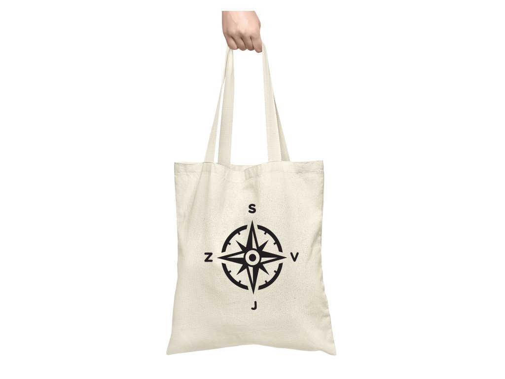 Nákupní taška vyrobená z bavlněné tkaniny v přírodní barvě.