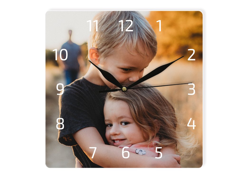 Fotografie jsou na hodinách natištěné od kraje ke kraji, aby jimi byla potištěna celá plocha hodin.