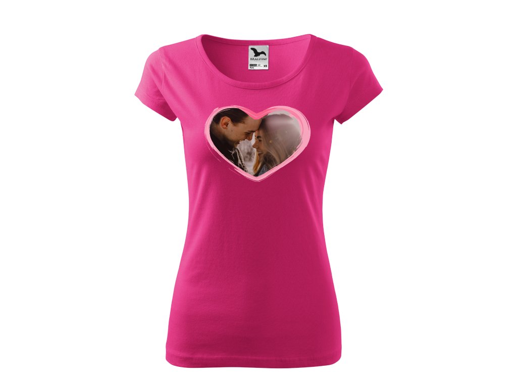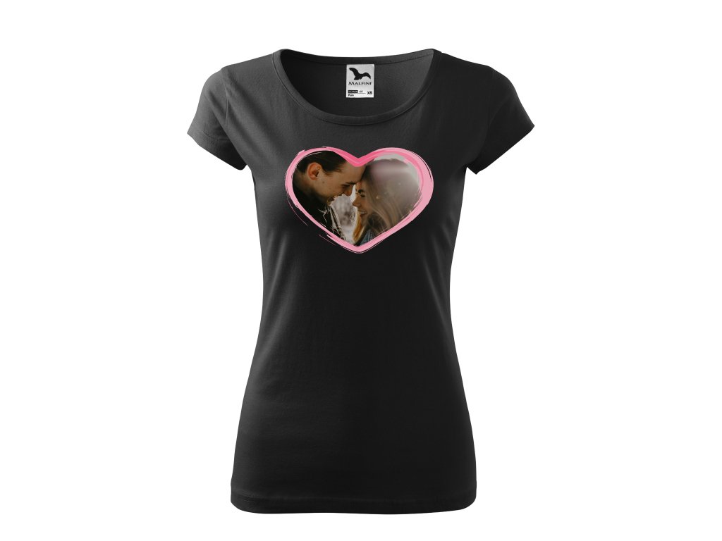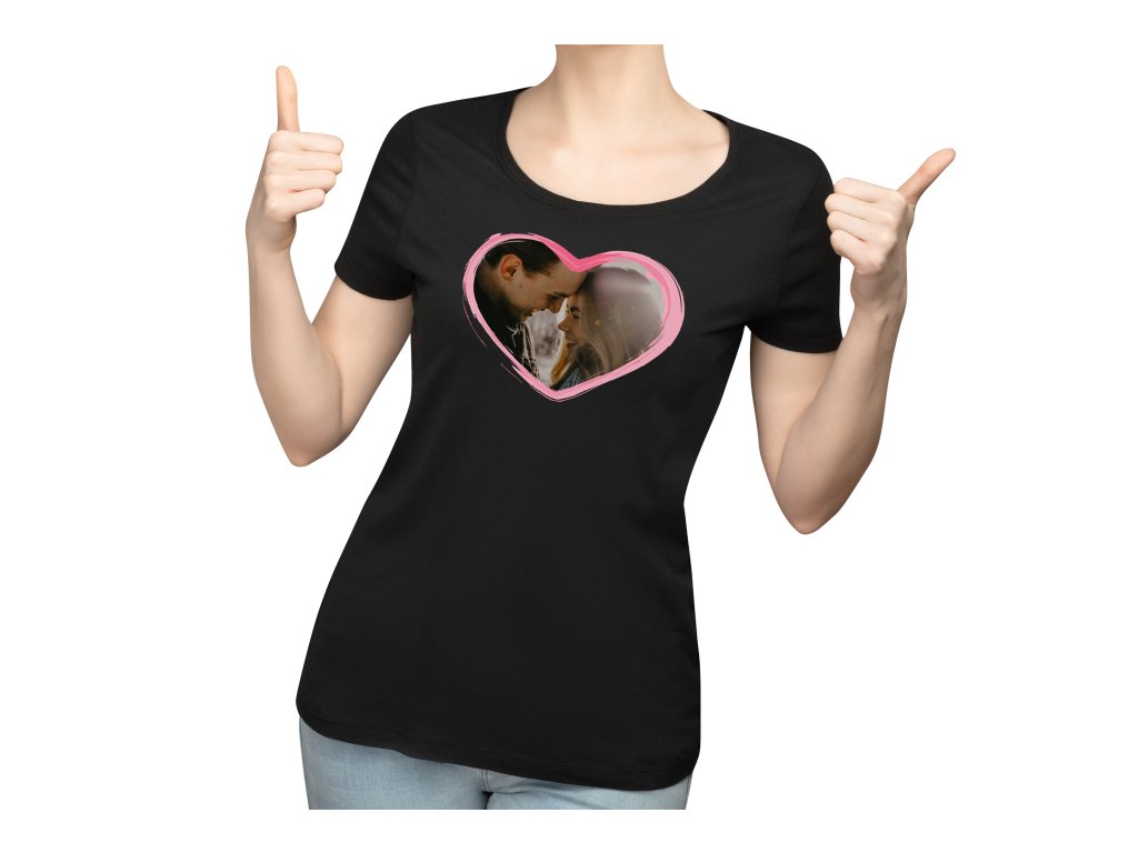 Romantické tričko s vlastní fotografií v srdíčku potěší každou partnerku, manželku nebo přítelkyni. Skvělé jako osobní dárek z lásky nebo jako připomínka krásného okamžiku.