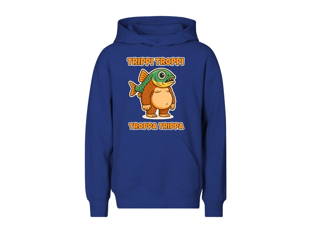 Dětská mikina Trippi Troppi Troppa Trippa je součástí oblíbené série Italian Brainrotů, která staví na lehkém chaosu, vtipných hláškách a originálních postavičkách. Skvěle se hodí jako dárek k narozeninám, Vánocům nebo jen tak pro radost – mikina, která pobaví děti i jejich okolí.