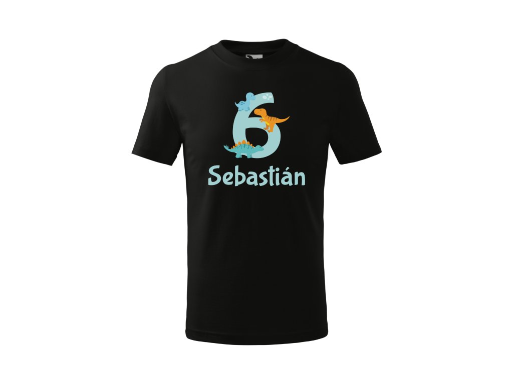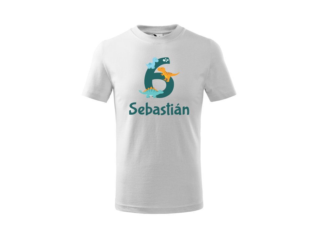 🦖 Dětské tričko s dinosaurem a číslem – narozeninový motiv s vlastním jménem
