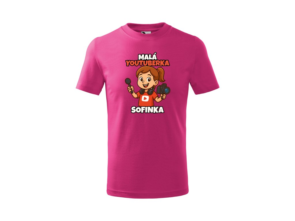 Tričko Malá youtuberka je ideální pro všechny holčičky, které milují natáčení, mikrofon a svět sociálních sítí. Veselý motiv s kamerou a možností doplnit vlastní jméno vytvoří originální tričko, které podpoří jejich kreativitu a radost z tvorby.