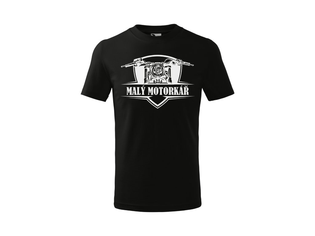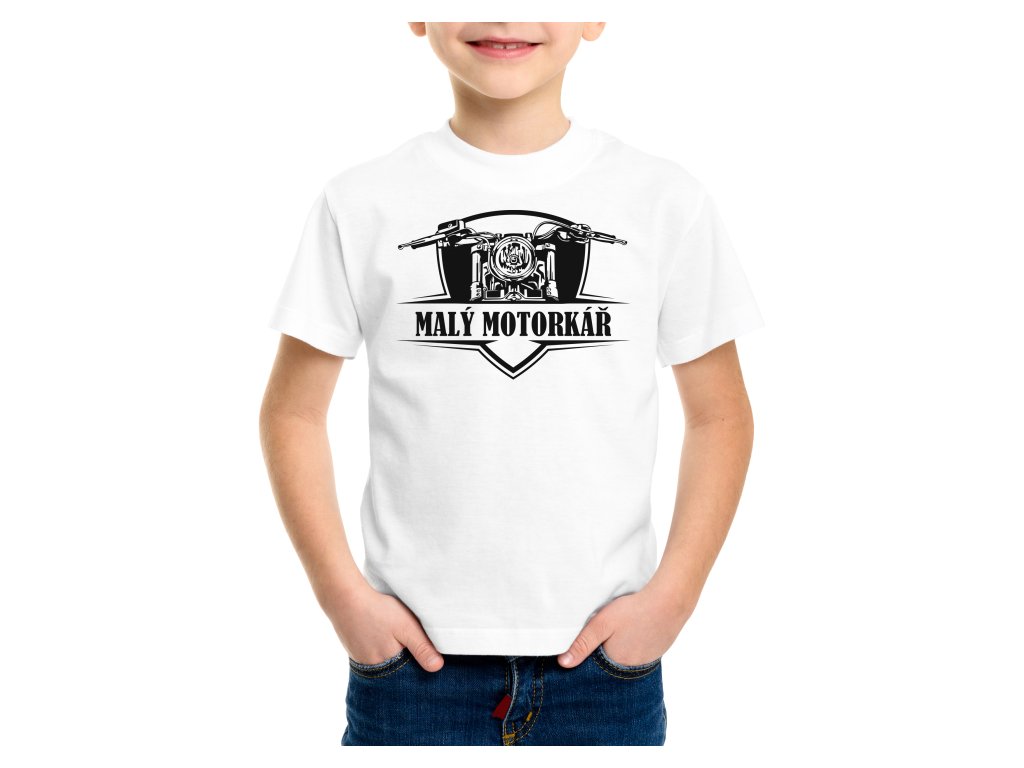 - Stylový potisk s motivem motorky a nápisem „Malý motorkář“