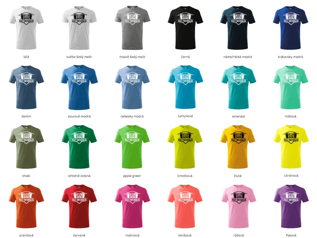 Tričko nabízíme ve 24 barevných variantách. Na přání můžeme doplnit jméno dítěte, klubový nápis nebo číslo – stačí zadat požadavek do poznámky při objednávce.
