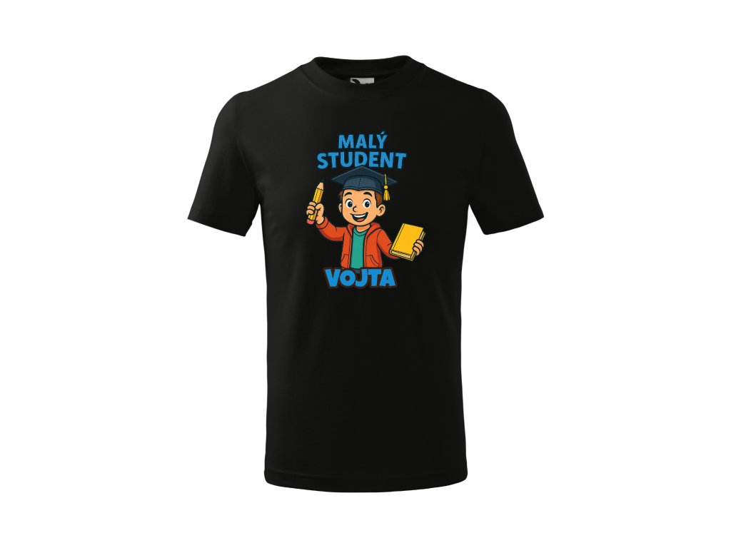 Tričko pro všechny malé školáky, kteří rádi objevují svět, milují knížky a pyšní se každým svým pokrokem. Motiv Malý student s tužkou, knihou a studentskou čepicí dodává tričku hravý a motivující vzhled. Díky možnosti doplnit vlastní jméno se z něj stane opravdu osobní dárek, který dítě nosí s radostí.