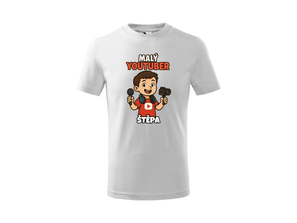 Tričko Malý youtuber je ideální pro všechny děti, které milují natáčení, mikrofony a svět digitální tvorby. Veselý motiv s kamerou, mikrofonem a možností doplnit vlastní jméno vytvoří originální tričko, které podpoří dětskou fantazii a kreativní nadšení.