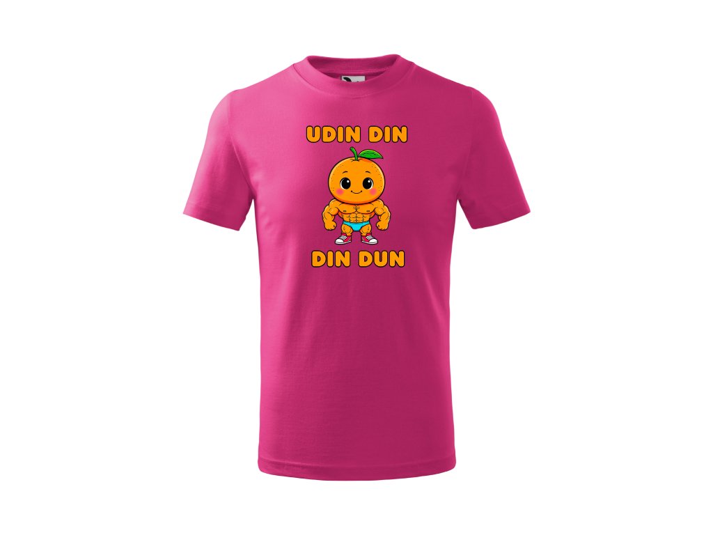 Dětské tričko Udin Din Din Dun je součástí hravé série Italian Brainrotů, která kombinuje humor, barvy a originální ilustrace. Veselý motiv svalnatého pomeranče pobaví na první pohled a dělá z trička ideální dárek k narozeninám, svátku nebo jen tak pro radost.
