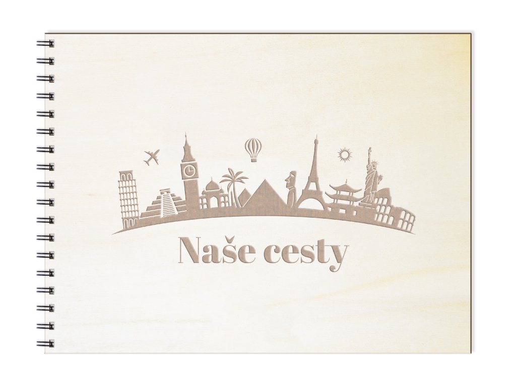 Originální dřevěné fotoalbum s laserově vygravírovaným motivem světových památek a nápisem „Naše cesty“ potěší každého cestovatele. Ideální dárek pro páry, přátele i rodiny, které rády zachycují svá dobrodružství a společné zážitky z cest.