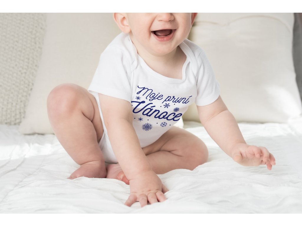Kojenecké body s krátkým rukávem. 1x1 žebrovaný průkrčník a spodní část.