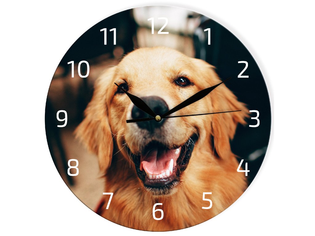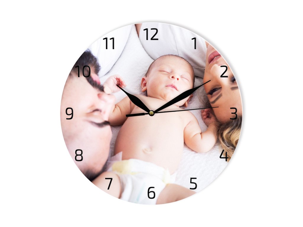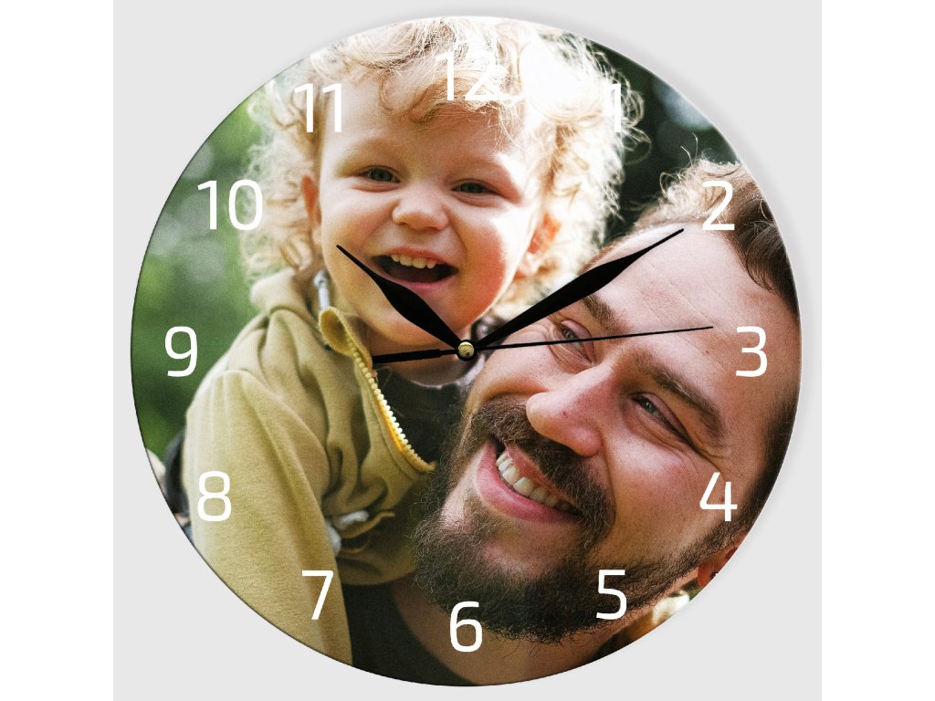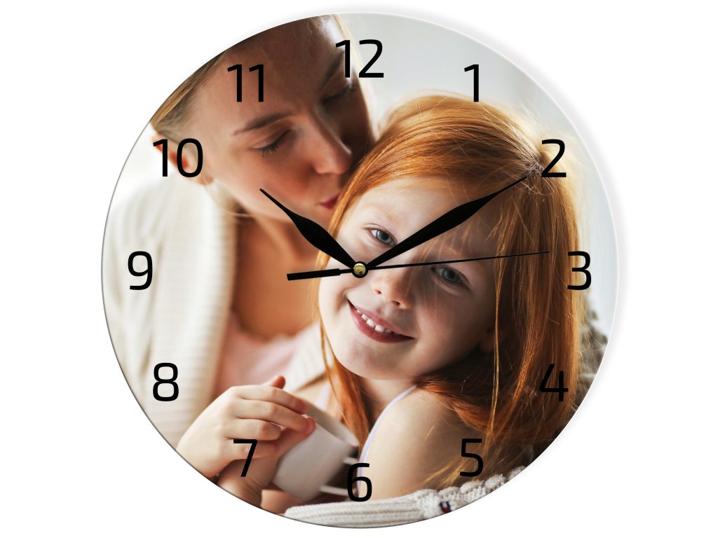 Fotografie jsou na hodinách natištěné od kraje ke kraji, aby jimi byla potištěna celá plocha hodin.