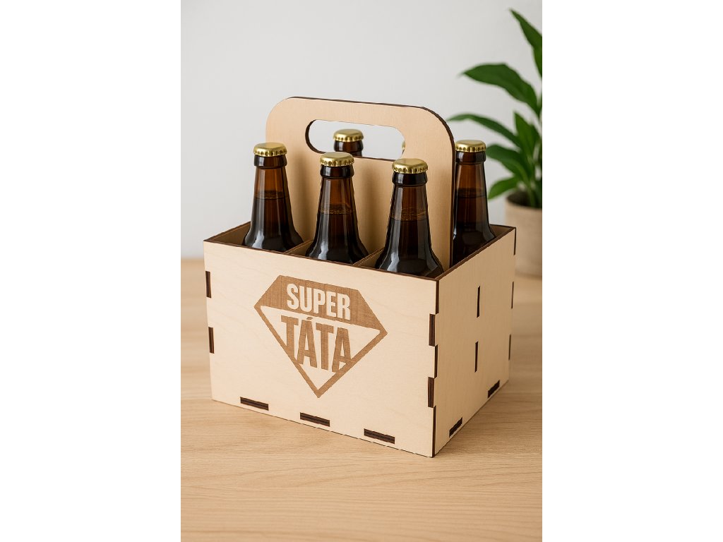 Perfektní dárek pro každého tátu, který má smysl pro humor a styl! Dřevěný nosič s gravírováním „Super táta“ potěší nejen milovníky piva, ale i všechny, kdo ocení originální ruční práci. Hodí se k narozeninám, svátku i Dni otců.