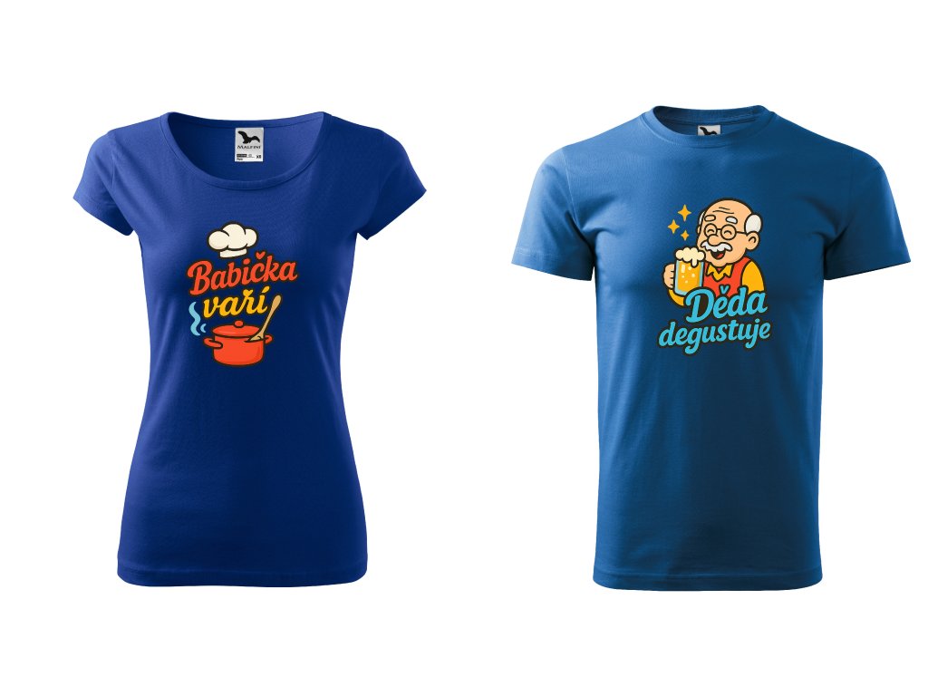 Veselá párová trička pro nejlepší tým v rodině – babičku a dědu! 😄 Jedno tričko s motivem „Babička vaří“ a druhé s nápisem „Děda degustuje“ se postarají o zábavu na rodinných oslavách, chalupě i v kuchyni. Originální dárek, který potěší, rozesměje a perfektně vystihne jejich role.