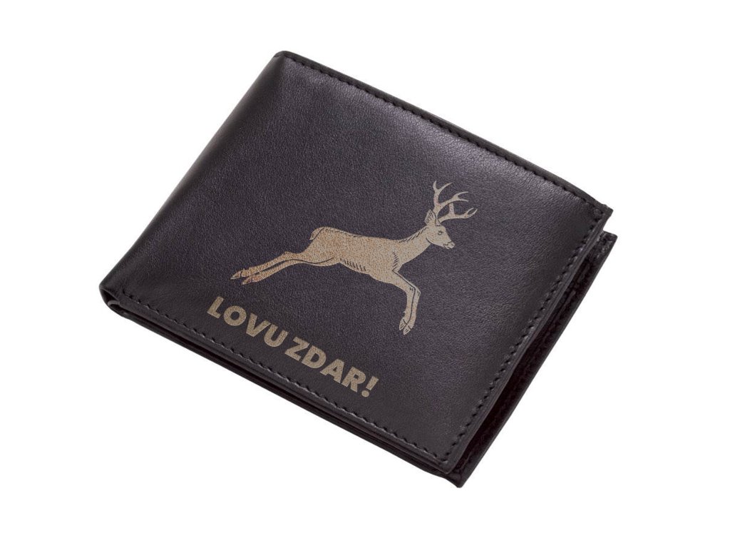 Pánská kožená peněženka má kapsu na mince s překlápěcí kapsou na doklady či karty a zapínáním na druk, 2x menší vkládací kapsu na karty a kapsu na bankovky.
