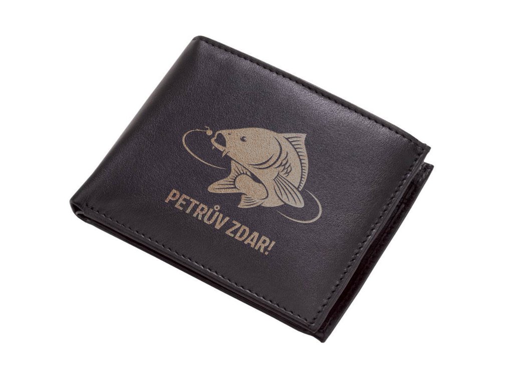Pánská kožená peněženka má kapsu na mince s překlápěcí kapsou na doklady či karty a zapínáním na druk, 2x menší vkládací kapsu na karty a kapsu na bankovky.