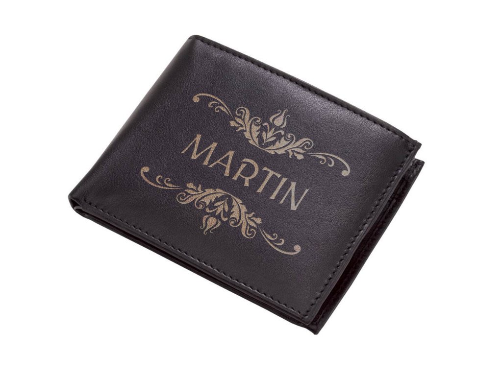 Pánská kožená peněženka má kapsu na mince s překlápěcí kapsou na doklady či karty a zapínáním na druk, 2x menší vkládací kapsu na karty a kapsu na bankovky.