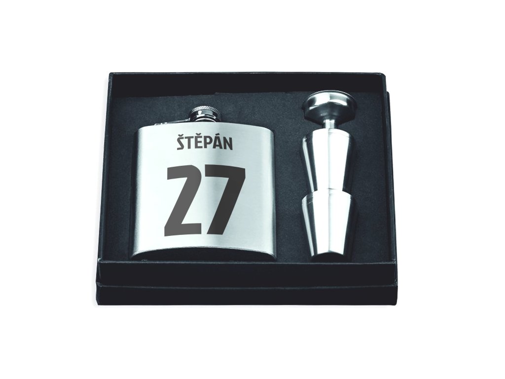 Dárková sada nerezová butylka s pohárky – „Štěpán 27“ ⚙️