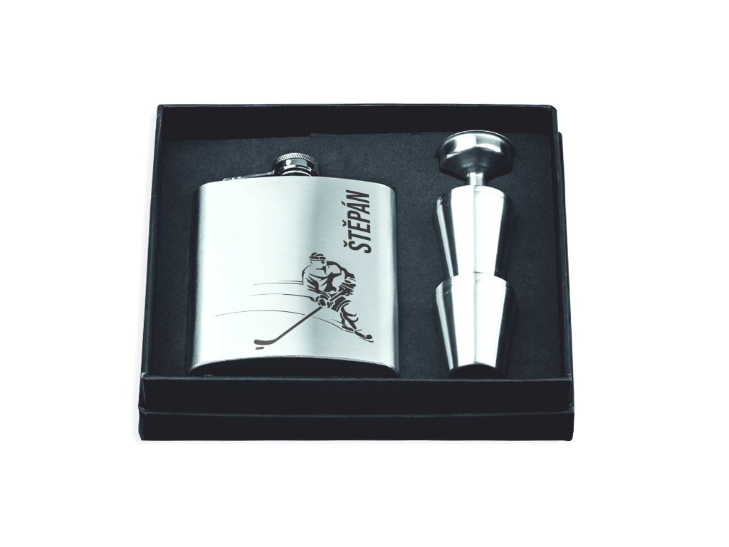 Dárková sada nerezová butylka s pohárky – Hokejista 🏒🥅