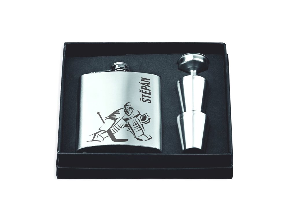 Dárková sada nerezová butylka s pohárky – Hokejový brankář „Štěpán“ 🏒🥅