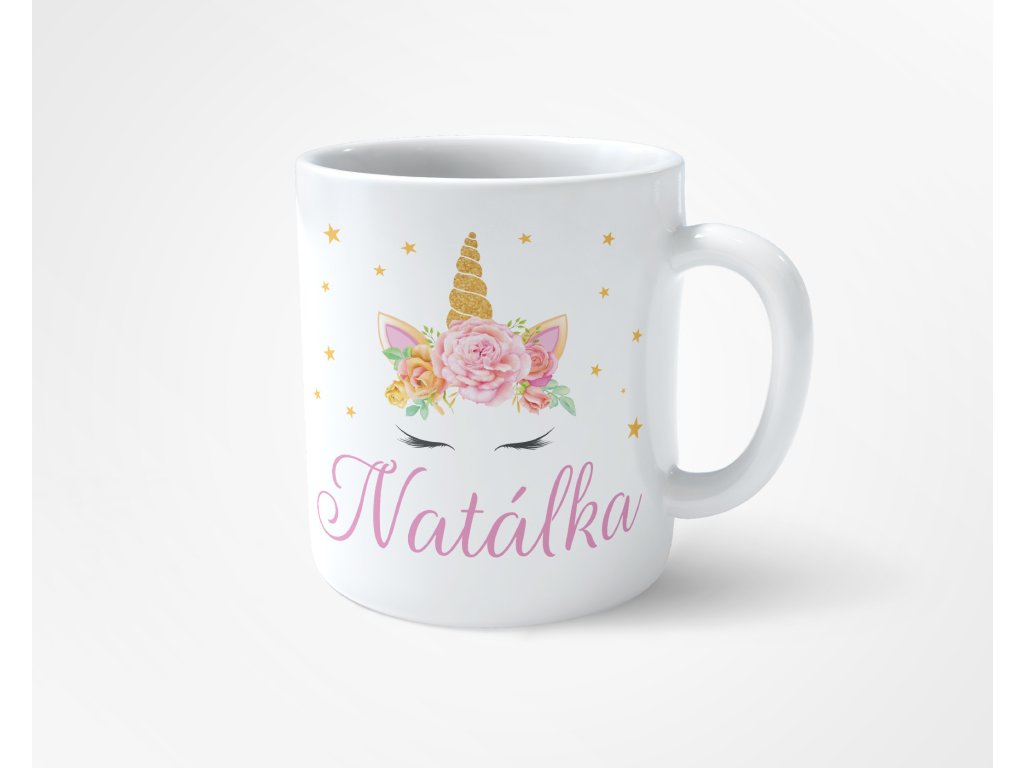 Plastový hrníček jednorožec s růží
