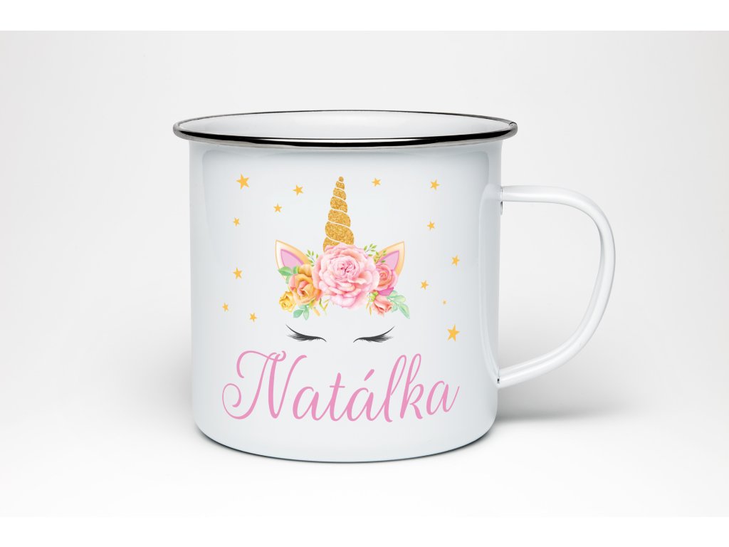 Kovový smaltovaný hrnek s uchem a s kvalitním sublimačním tiskem.