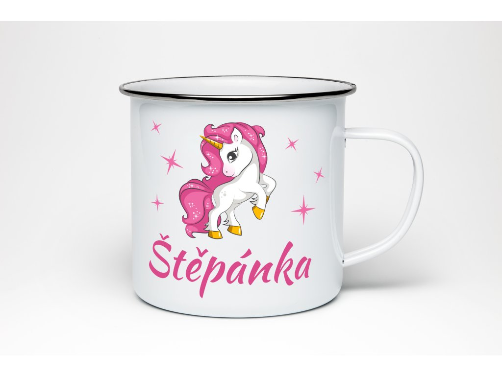 Kovový smaltovaný hrnek s uchem a s kvalitním sublimačním tiskem.