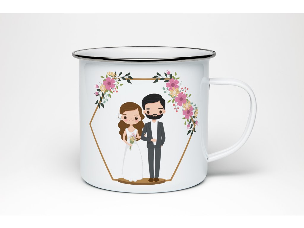 Originální smaltovaný plecháček s motivem novomanželů v květinovém rámečku je nádhernou památkou na svatební den. Elegantní design v jemných barvách působí romanticky a decentně – perfektní dárek pro novomanžele, který zůstane jako vzpomínka na jejich velký den.