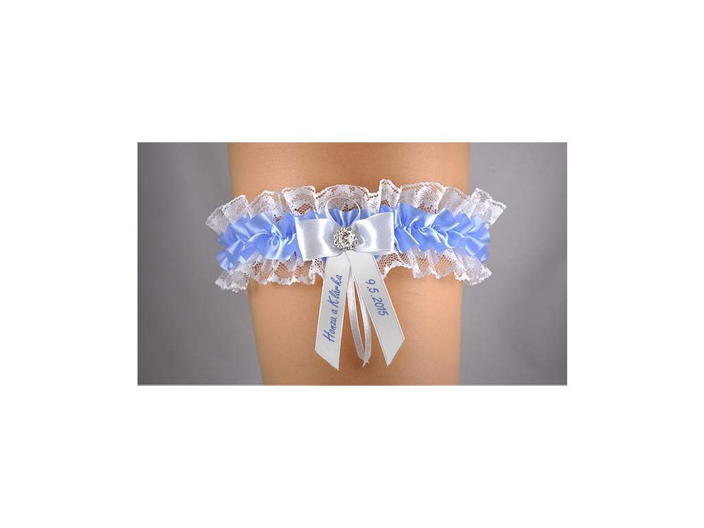 💎 Svatební podvazek s modrou stuhou, mašličkou a jmény na přání