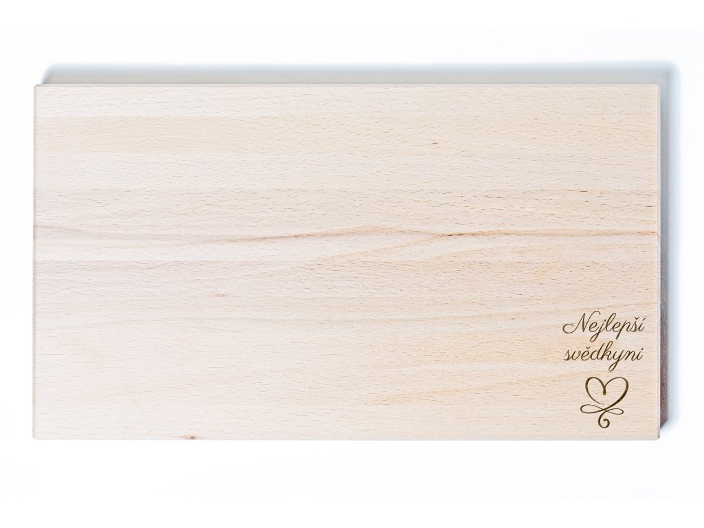 Prkénko má rozměr 200x350x22 mm a je zhotovené z bukového dřeva s certifikátem FSC, je vhodné nejen na krájení, ale také na servírování potravin.