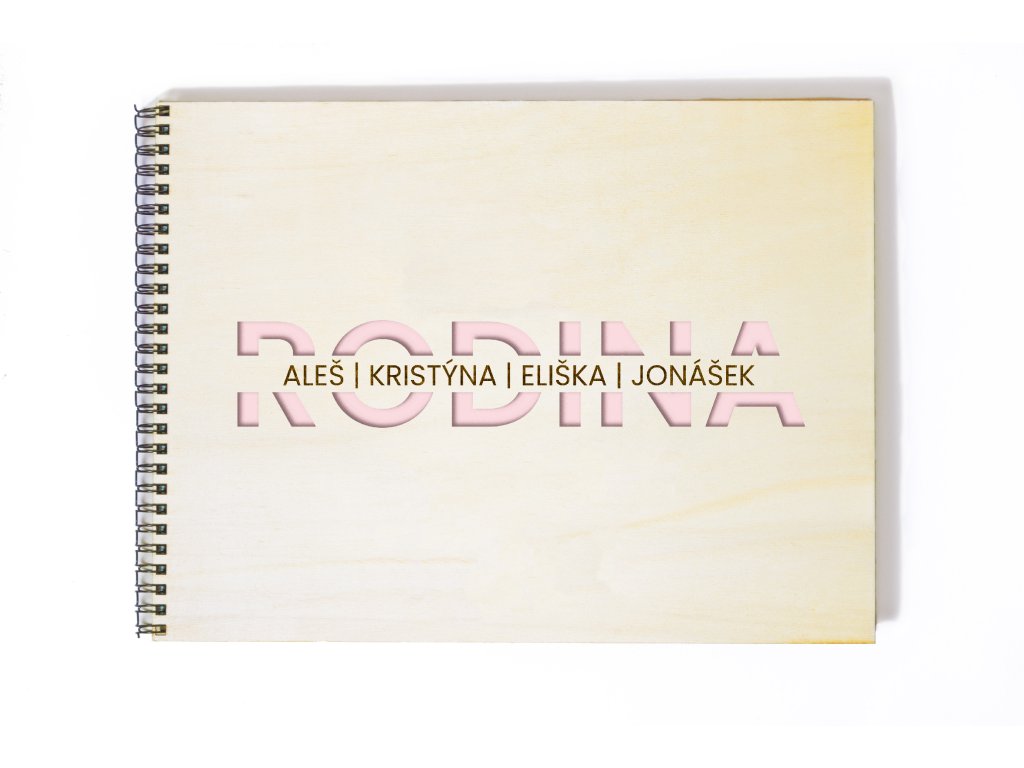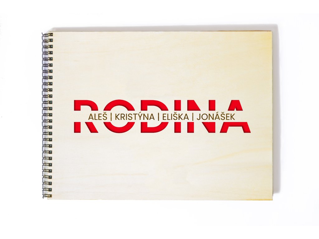 Materiál: topol, uvnitř 20-50 listů fotokartonu v černé barvě, kovová vazba