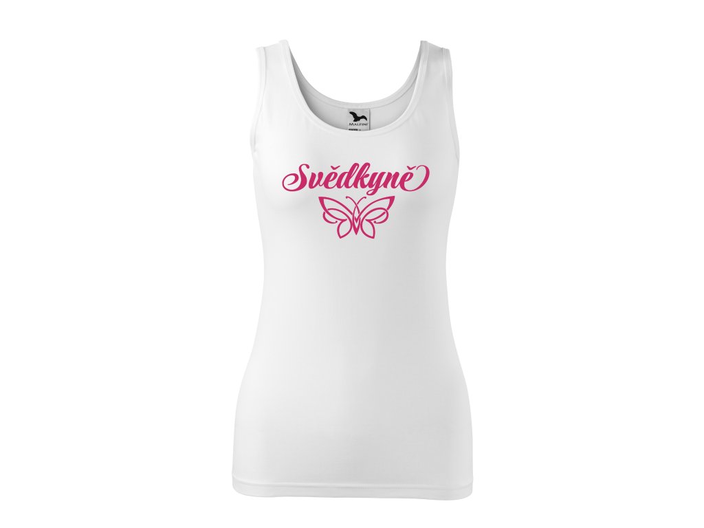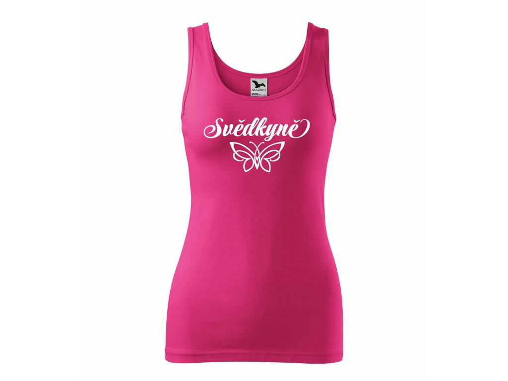 Popis: strečový materiál udržující stálost tvaru, přiléhavý střih s bočními švy, hlubší kulatý výstřih, průkrčník a průramky lemovány vrchovým materiálem, širší ramínka, pratelné na 30 °C