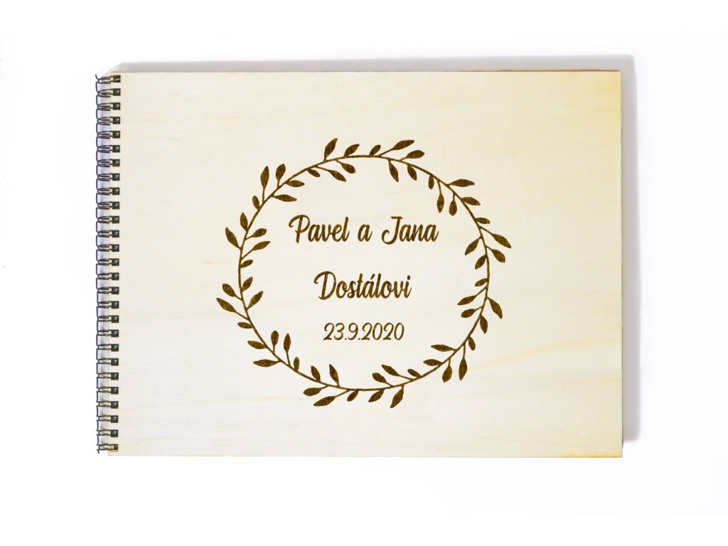 Materiál: topol, uvnitř 20-50 listů fotokartonu v černé barvě, kovová vazba