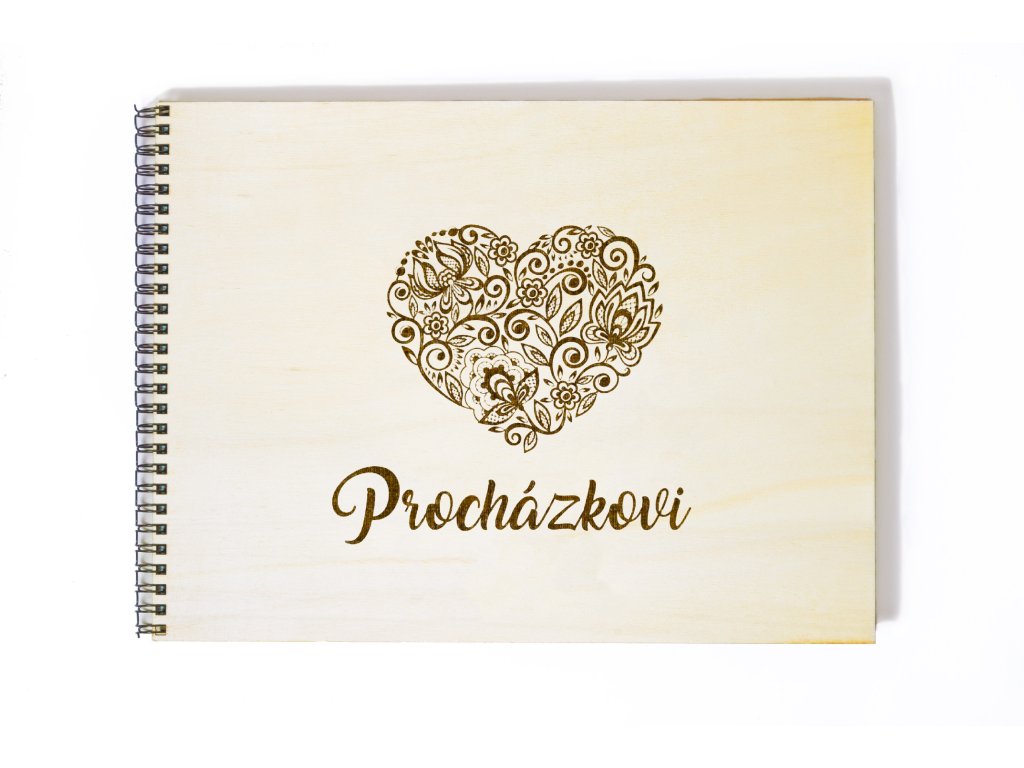 Materiál: topol, uvnitř 20-50 listů fotokartonu v černé barvě, kovová vazba