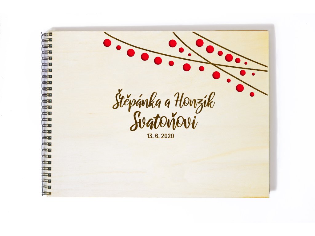 Materiál: topol, uvnitř 20-50 listů fotokartonu v černé barvě, kovová vazba