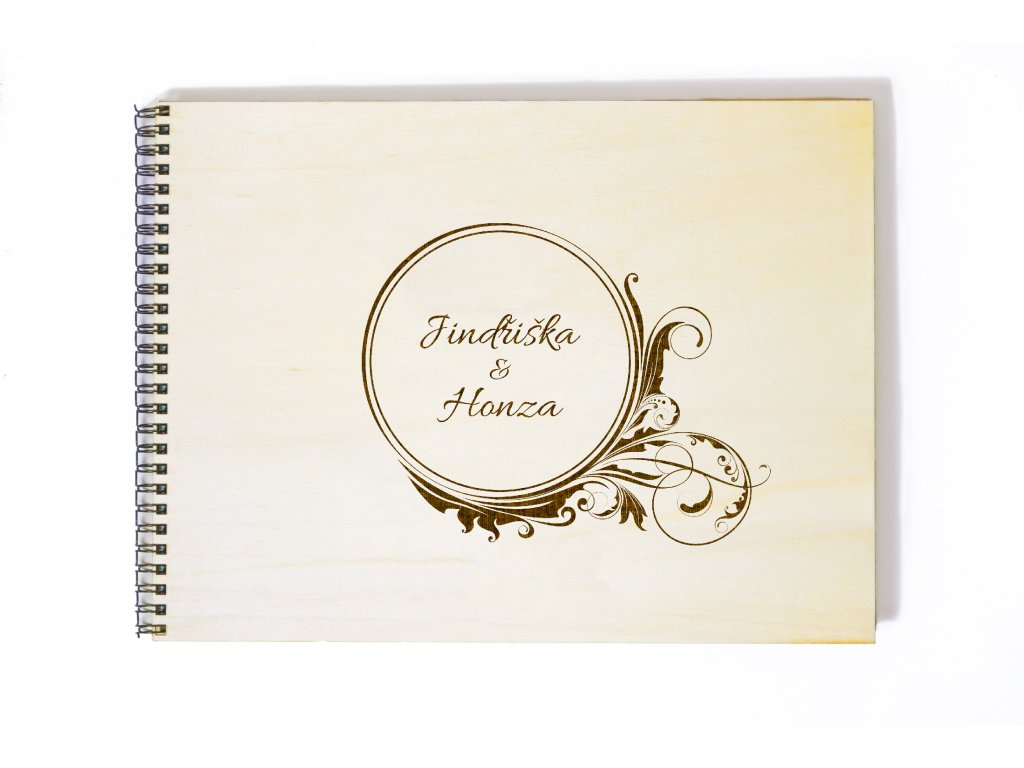 Materiál: topol, uvnitř 20-50 listů fotokartonu v černé barvě, kovová vazba